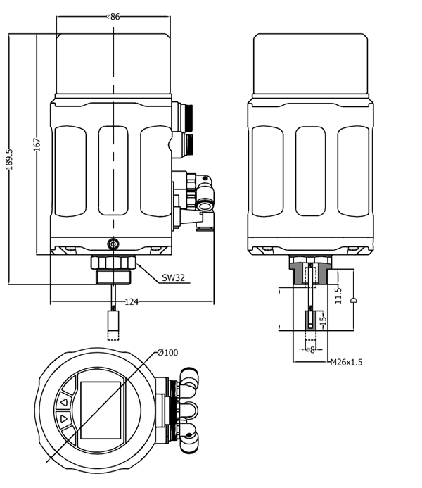 傾向于安裝在執行器頂端,通過螺紋和執行器連接